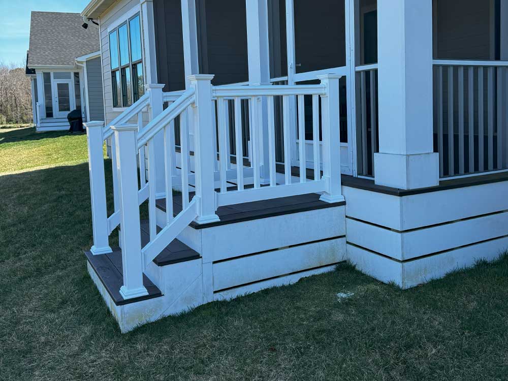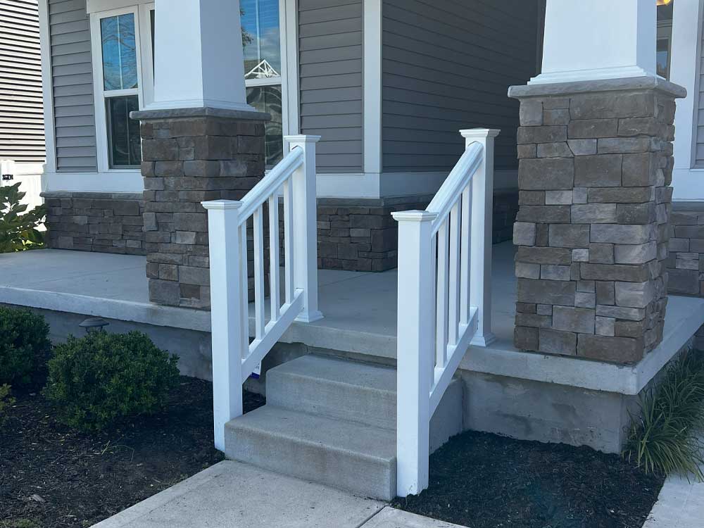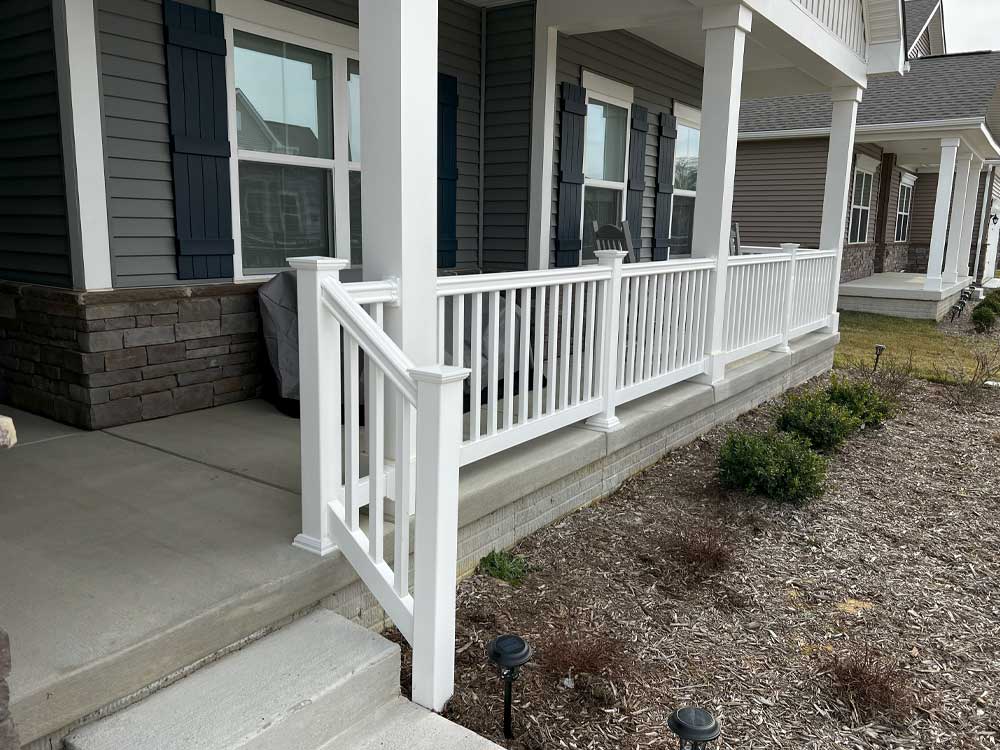 Railings not only add an extra flair to your outside, they also provide peace of mind as a safety feature to your home. We are happy to offer suggestions that will help customize your look aesthetically. Choose from vinyl, composite, or wood. We install railings on your current porch, deck, balcony, and more.